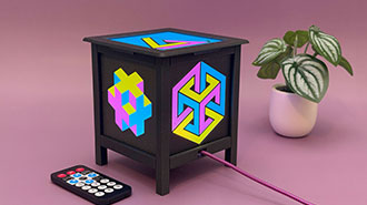 3D printed lamp with colorful panels.