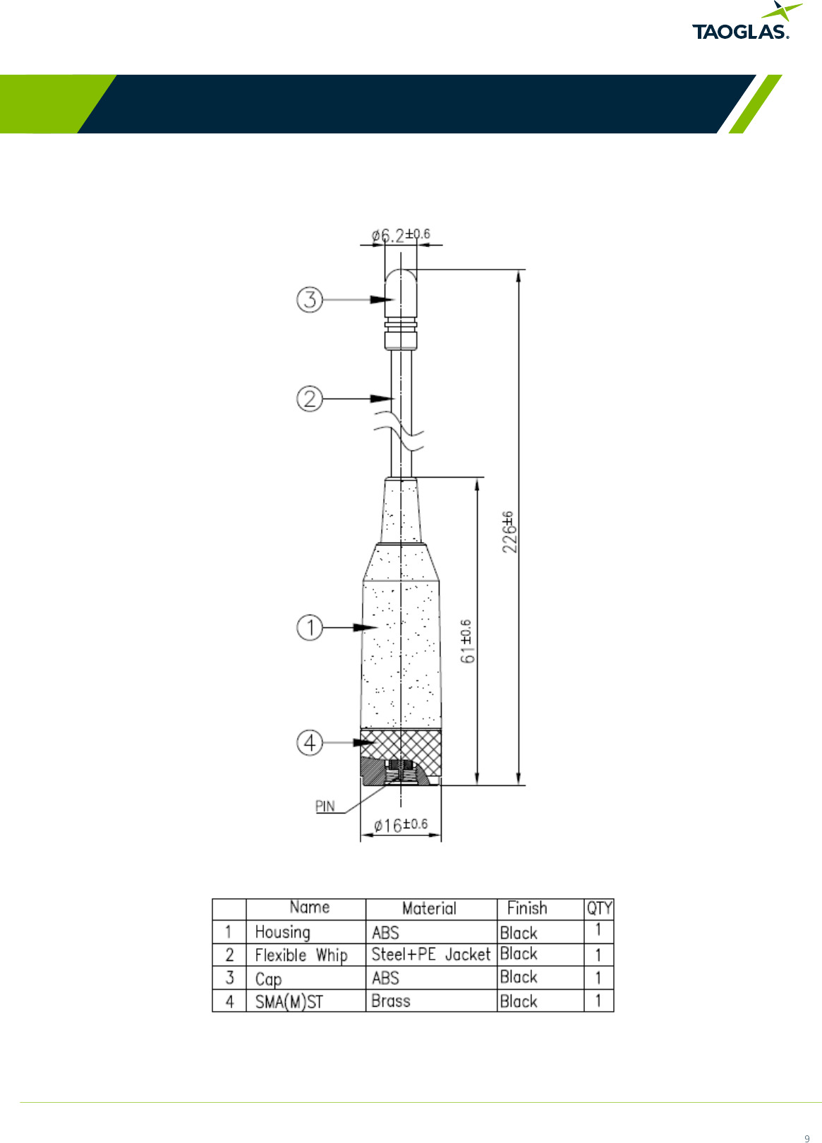 FW.95.B.SMA.M Specification Datasheet by Taoglas Limited
