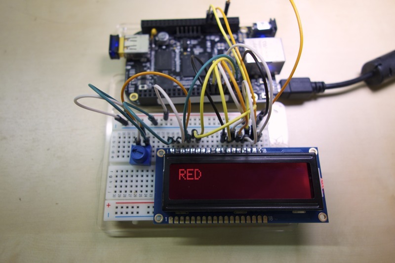• Connect BeagleBone Black pin P8_7 to LCD pin 16 (-R/red).