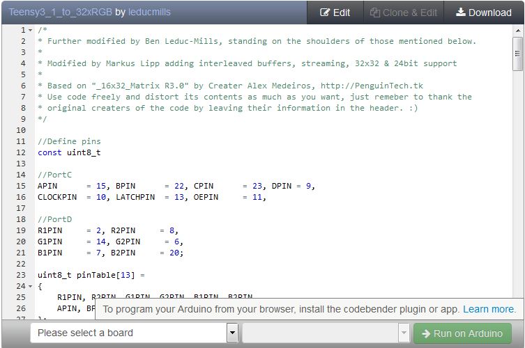 As Codebender doesn’t currently support the Teensy boards, you’ll have to copy and paste the code into an Arduino sketch on your computer.