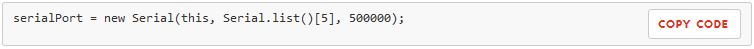 will need to reflect the actual serial port your Teensy 3.1 is connected to. So you’ll want to replace the ‘5’ in brackets with the number reflective of the array index belonging to your port, which is to say: running this code will cause Processing to print out a list of serial ports, and you need to pick the place in this list that your Teensy is connected to, starting from zero (because it’s an array).