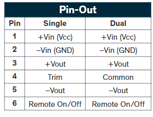 - 3.3 VDC to 24 VDC single and dual output