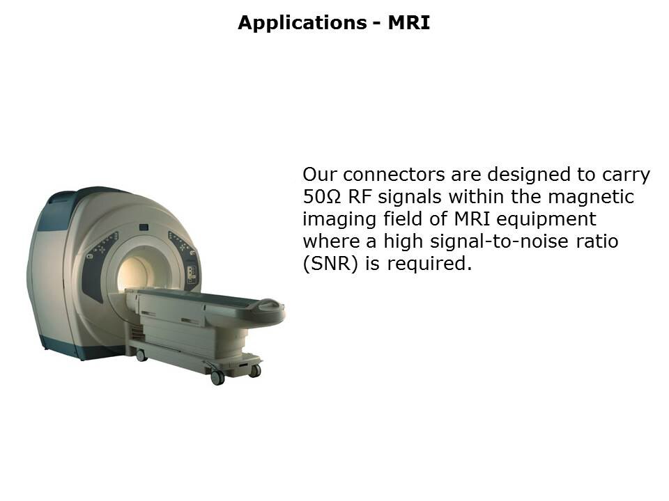 The non-magnetic connectors from Amphenol are designed to carry 50 Ohm RF signals within the magnetic imaging field of MRI equipment, where a high signal-to-noise ratio is required.
